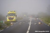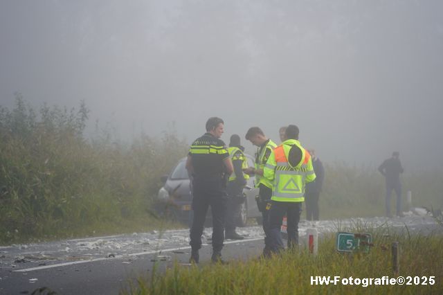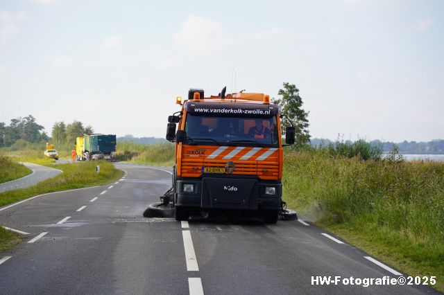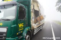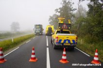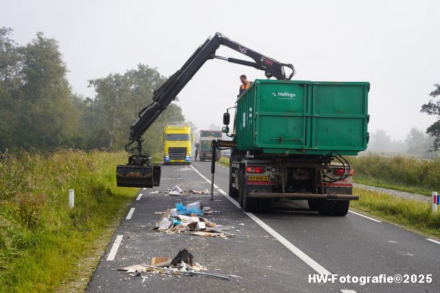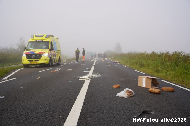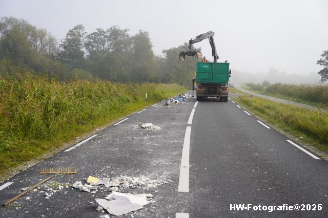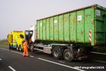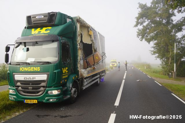 WANNEPERVEEN – Een ongeval met twee vrachtwagens zorgde maandag rond 09:30 uur voor een urenlange afsluiting van de N762, de Veneweg tussen de Blauwe Hand en Sint Jansklooster. De chauffeur van een koel vries bakwagen raakte door onbekende oorzaak op de verkeerde weghelft. De chauffeur van een container combinatie kon een frontale aanrijding voorkomen door uit te wijken naar de berm. Ondanks deze poging raakten de twee elkaar toch.