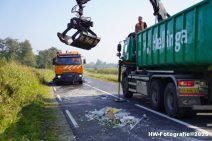 Ondertussen waren door agenten en medewerkers van de provincie een gedeelte van de weg vrijgemaakt zodat het ingesloten verkeer weer verder kon. Voor het opruimen van de vele brokstukken en de goederen werden een knijpauto van Hellinga en een veeg/zuigauto van de firma van der Kolk ingezet. Ook de wegafzettingen werden door laatstgenoemde geregeld. Rond 13:30 uur waren alle werkzaamheden afgerond en kon de Veneweg weer worden vrijgegeven.