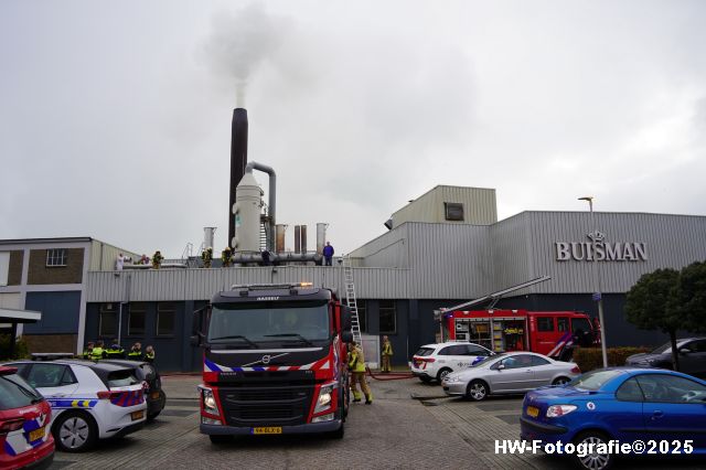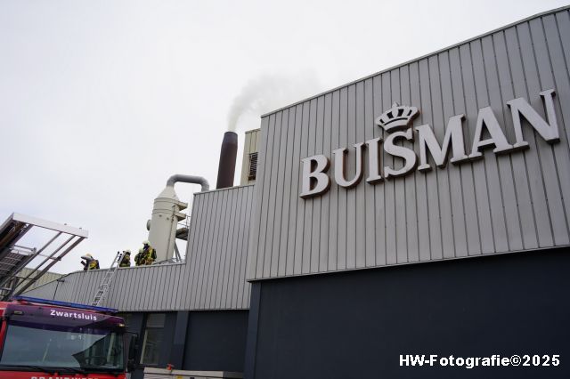 ZWARTSLUIS – Bij Koninklijke Buisman aan de Zomerdijk is woensdag rond 12:20 uur brand ontstaan. Het bedrijf produceert natuurlijke, gekarameliseerde ingrediënten, zoals suiker en melk, die worden toegepast in diverse dranken. Tijdens een proces is er brand ontstaan in één van de kookpotten. Door de enorme hitte is de brand doorgeslagen naar het dak rondom de schoorsteen van de kookpot.