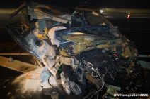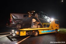 DE LICHTMIS – Op de A28, tussen Staphorst en Zwolle ter hoogte van De Lichtmis, heeft vannacht om 05:15 uur een ongeval plaatsgevonden tussen een bestelbus en een vrachtwagen. De bestuurder van de bestelbus botste achterop een oplegger van een vrachtwagencombinatie. De bestelbus kwam zwaar beschadigd tot stilstand tussen rijstrook 3 en de oprit van de snelweg. De vrachtwagen kwam zo’n 100 meter verder op de vluchtstrook terecht met een gehavende achterbumper en forse luchtlekkage.