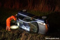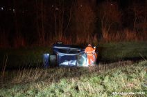 De auto kwam na een keer over de kop te zijn geslagen op de zijkant in een sloot tot stilstand. Omstanders boden direct hulp en alarmeerden de hulpdiensten. De man kon zelf uit de auto klimmen via het portier. Na controle door ambulancepersoneel bleek dat er geen sprake was van letsel.