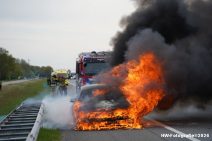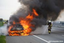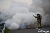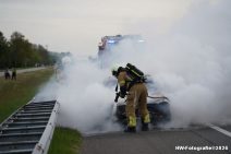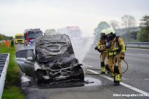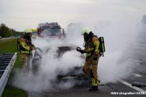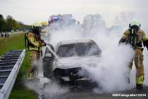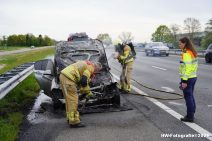 ZWOLLE – De Zwolse brandweer werd maandag rond 17:21 uur opgeroepen voor een melding van een autobrand op de A28. Tussen Zwolle en De Lichtmis was een BMW spontaan in brand gevlogen tijdens het rijden. De twee inzittenden hoorden een knal en konden de auto op de vluchtstrook parkeren en zichzelf in veiligheid brengen.